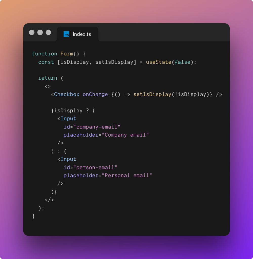 Vì vậy khi isDisplay thay đổi, React không nghĩ rằng cần xoá input cũ rồi tạo input mới. React chỉ nghĩ: